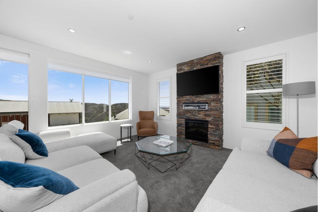 Inside, enjoy modern alpine comfort with a stone fireplace, open-plan living and dining, a fully equipped kitchen, and sweeping mountain views. Two spacious bedrooms each feature a private ensuite and robes, making it ideal for families or couples travelling together.