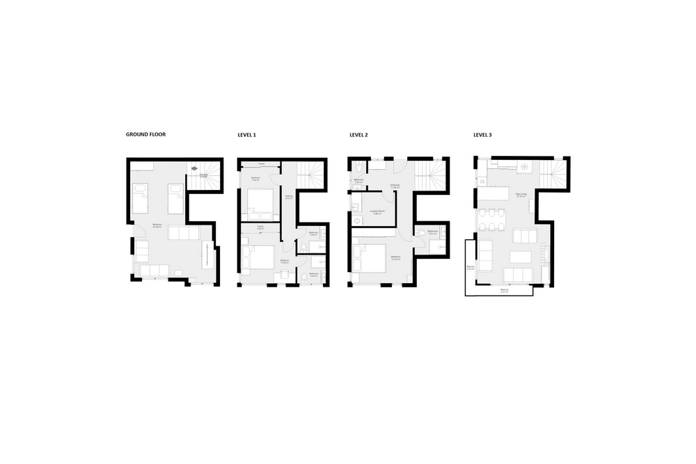 There are 4 Bedrooms with the following configuration.