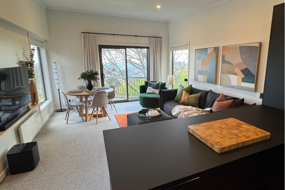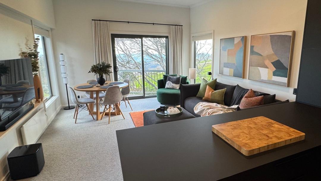 Recently renovated, Higgi Drive Apartment 6 is a modern and spacious one-bedroom, one-bathroom top-floor apartment featuring a brand-new, fully equipped kitchen. The private balcony offers stunning views over the Big D ski run and the surrounding mountain ranges.